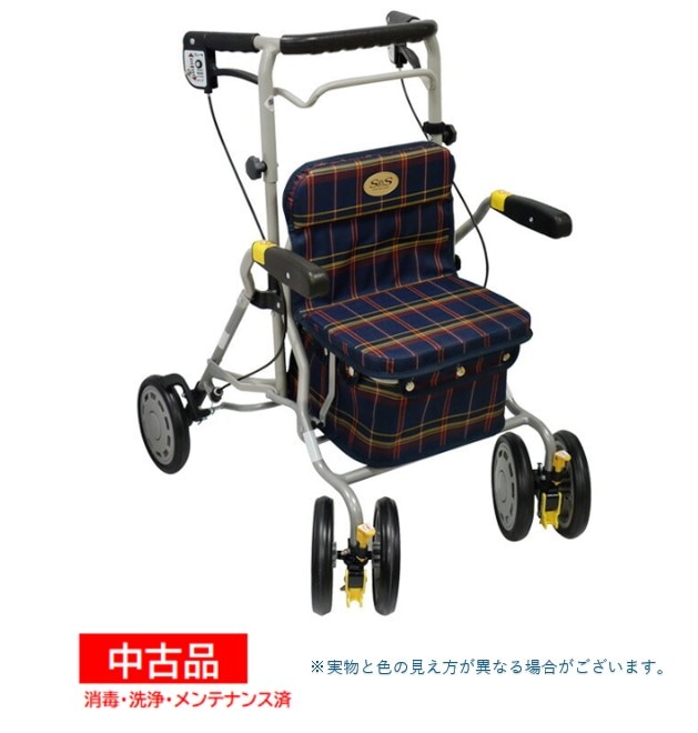 【中古】パラマウントベッド ハンディウォークS KZ-C21001 歩行車 歩行器 コンパクト 軽量 座面付き 軽い収納バスケット バスケット 袋 収納 折りたたみ 折り畳み 屋外