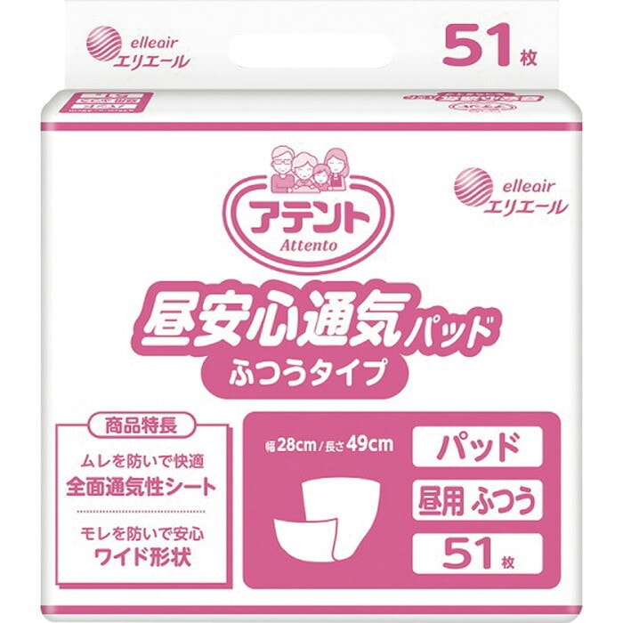 大王製紙 アテント 昼安心通気パッド ふつうタイプ 400cc 28×49cm 51枚 大人のおむつ 大人のオムツ