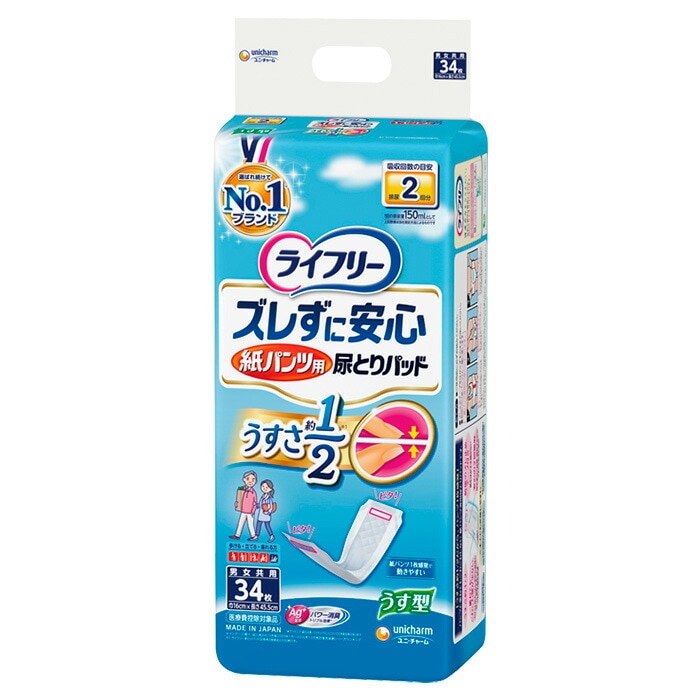 ユニチャーム ライフリー ズレずに安心紙パンツ専用尿とりパッド うす型 34枚入り 尿とりパッド 大人のおむつ 大人のオムツ ユニ・チャーム